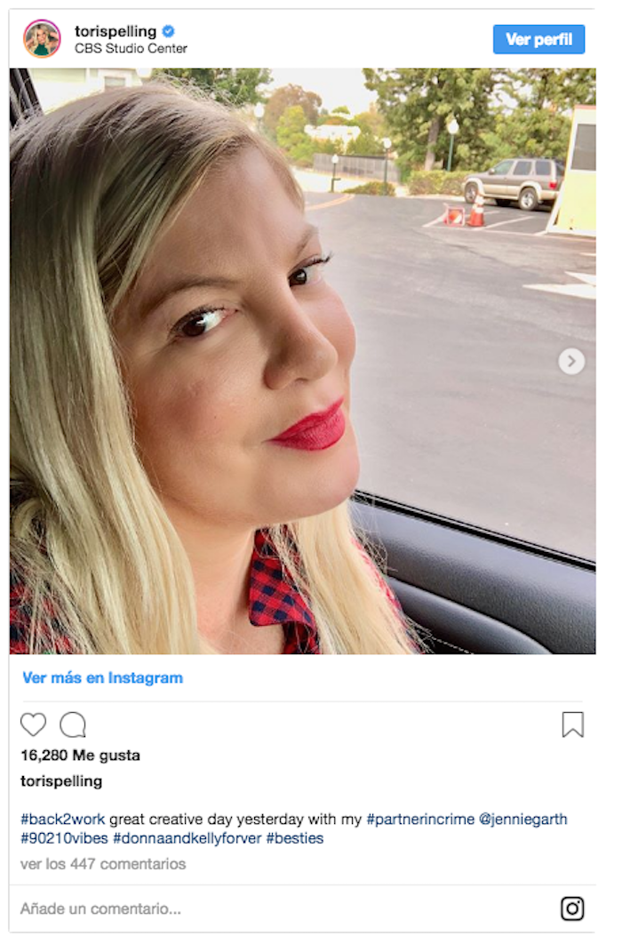 Tori Spelling ya insinuó un posible regreso de Sensación de vivir el pasado marzo. La actriz colgó una imagen en Instagram en la que aparecía en los estudios de CBS, asegurando estar "de vuelta al trabajo". "Un gran día creativo ayer con Jennie Harry", escribió junto a la foto.