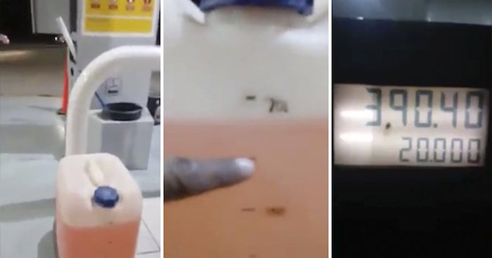 Según la grabación, utilizando un recipiente de 20 litros el quejoso afirma que pagó por esa misma cantidad de gasolina, pero ésta no le habría sido entregada por completo pues el contenedor aún no luce lleno.