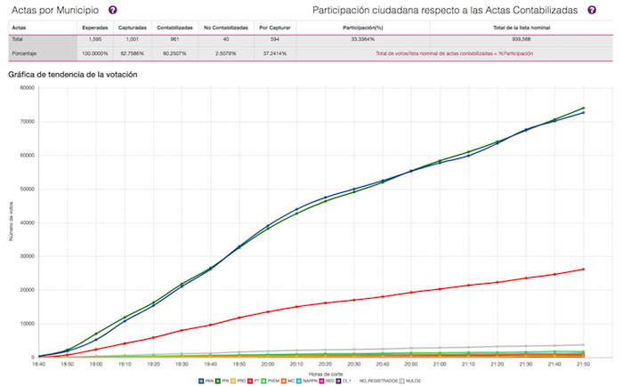 Esta elección extraordinaria contó con una participación de 32.84 por ciento de los 939 mil 568 electores registrados en la localidad, lo que representa un total de 288 mil 187 sufragios, según cifras del Programa de Resultados Electorales Preliminares.
