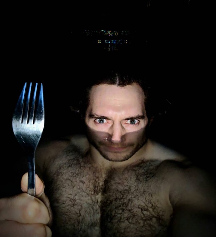 El actor de El hombre de acero y Liga de la Justicia compartió una imagen en su cuenta de Instagram en la que aparece sosteniendo un tenedor y con el cuerpo metido en el agua. La imagen está hecha de noche, lo que no permite ver si está en un recinto público o privado.