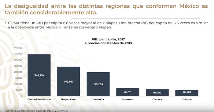 Mencionó que los estados más pobres están creciendo a tasas más pequeñas que los más ricos, por ello, se necesitan cambiar las reglas de operación financieras en el país. "Por ejemplo, a Oaxaca le tardaría 236 años en lograr un PIB como el de la Ciudad de México", indicó.
