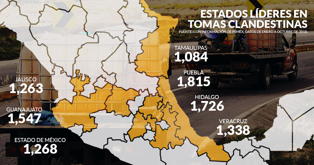 El huachicoleo en Puebla creció exponencialmente durante el morenovallismo. Según los datos publicados por Pemex, la entidad ocupó el primer lugar durante todo 2018 con mil 815 tomas clandestinas detectadas.