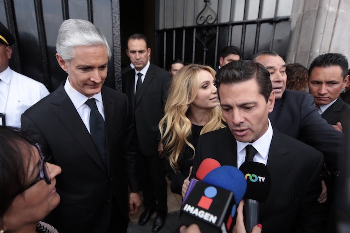 Además de la ex Primera Dama, Angelica Rivera, Enrique Peña Nieto llegó al homenaje de su tío Alfredo del Mazo González con sus hijos Paulina, Nicole y Alejandro.