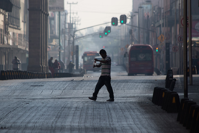 Con un presencia de una bruma grisacea los capitalinos amanecieron el primer día de año. Foto: Moisés Pablo, Cuartoscuro
