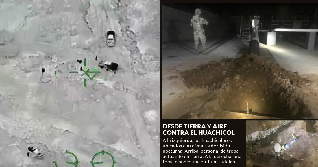 Un avión del Ejército localizó a aproximadamente 20 vehículos, incluidas pipas. El sitio está a 10 kilómetros de Tulancingo, y se mandó un operativo. Incluso se mostraron imágenes de la gente con mangueras huyendo de la zona al percatarse de los militares.