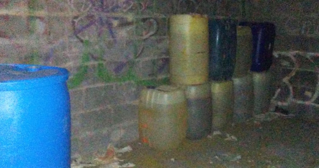 La Secretaría de Seguridad Pública informó en un comunicado que agentes policiacos encontraron 10 tanques de 200 litros y nueve garrafas de 60 litros cada una en un predio abandonado de la colonia Ampliación Méndez.