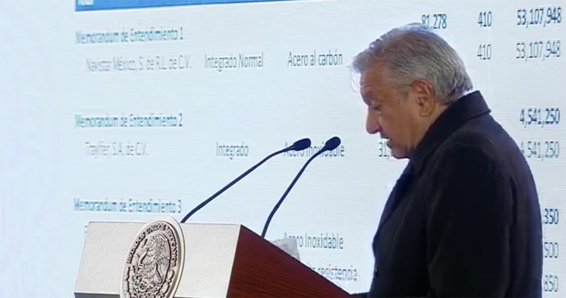 “Antes de la tragedia de Hidalgo se resolvió comprar carros tanques para aumentar el volumen de combustible transportarlo”, recordó. Dijo que se busca distribuir cuando menos 200 mil barriles más con las pipas que se van a adquirir. Anunció que se envió una misión a Estados Unidos para adquirir autotanques. La misión la integró el Secretario de Relaciones Exteriores, Marcelo Ebrard; la Secretaria de la Función Pública, Irma Eréndira Sandoval; la Secretaría de Economía, Graciela Márquez y la Oficial Mayor, Raquel Buenrostro Sánchez. También fueron funcionarios públicos de Pemex y de la Secretaría de la Defensa.