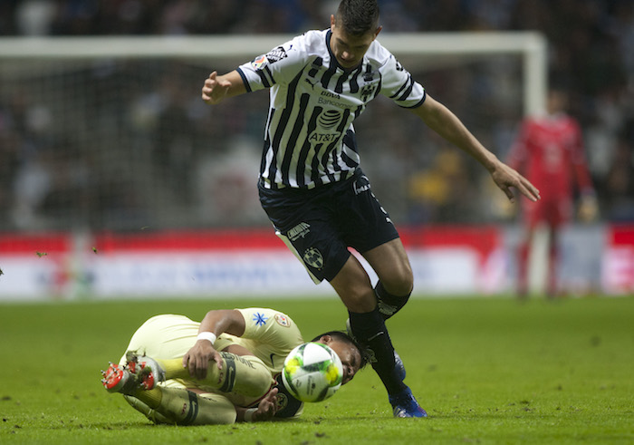 César Montes, del Monterrey, se disputa el balón con Guido Rodríguez, del América, en el estadio BBVA Bancomer, partido correspondiente a la jornada 4 de la Liga MX, Clausura 2019. Foto: Gabriela Pérez Montiel.