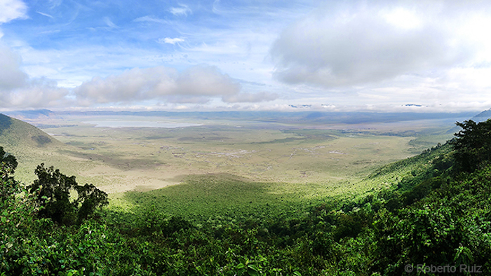 Así luce la caldera del cráter del Ngorongoro desde lo más alto. Foto: Roberto Ruiz, ElDiario.es