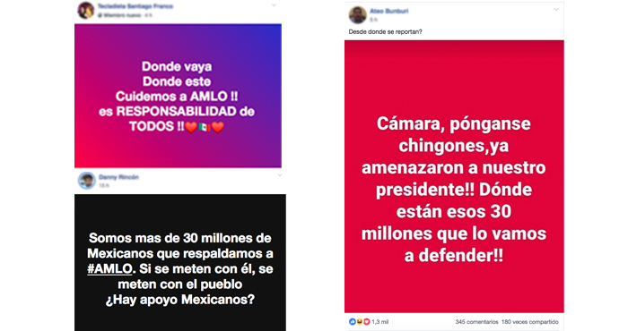 Entre las miles de reacciones que motivó su postura, destacó una escalada emotiva que se manifestó en llamados a la ciudadanía para proteger al Presidente. En estos mensajes hicieron eco palabras que el mismo López Obrador mencionó con anterioridad: "No va a haber Estado Mayor Presidencial, me va a cuidar el pueblo".