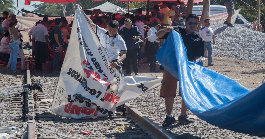 Durante casi 17 días, integrantes de la sección XVIII del CNTE bloquearon las vías que conectan al puerto de Lázaro Cárdenas con el centro de Michoacán, en protesta por la falta del pago de sueldos y bonos.
