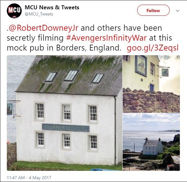 Hay que tener en cuenta que, cuando la filmación de Endgame estaba en marcha, el periódico escocés Berkshire Advertiser informó que Mark Ruffallo, Robert Downey Jr. y Chris Hemsworth también se encontraban en St. Abbs para rodar algunas secuencias en el set The Cormorant and Tun.