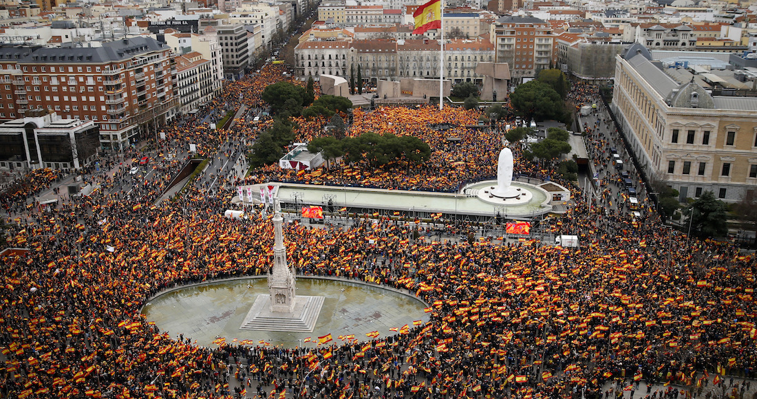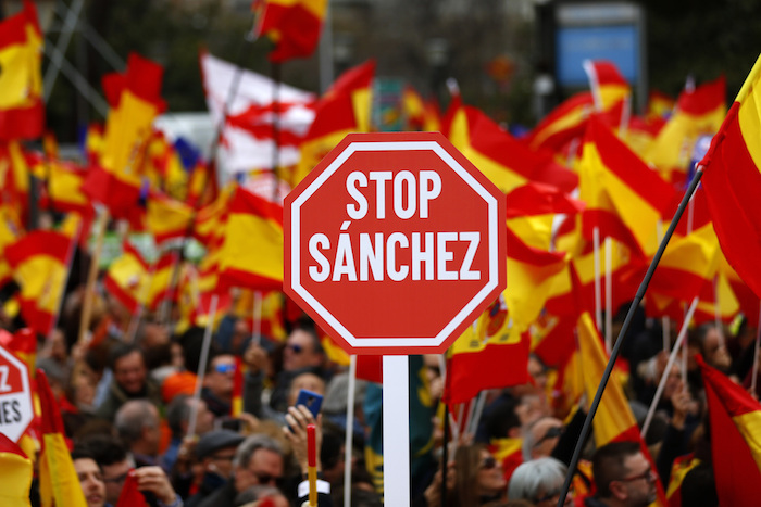 El conservador Partido Popular y la formación de centroderecha Ciudadanos, ambos en la oposición, organizaron el acto, que contó con el respaldo de la ultraderechista Vox y de otras formaciones marginales de la derecha radical. Los convocantes sostienen que Sánchez debe renunciar por mantener conversaciones con los independentistas en la región nororiental de Cataluña.