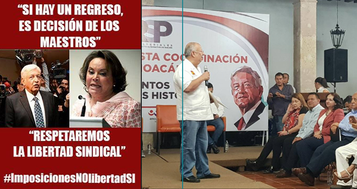 "Le tomamos la palabra al Presidente electo [Andrés Manuel López Obrador] tenemos que construir nuevos liderazgos surgidos del voto libre, secreto y universal de todos y cada uno de los trabajadores de la educación", afirmó Elba Esther.