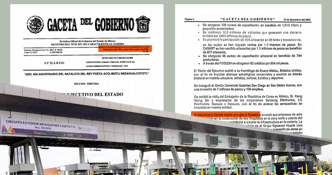 Entre las carreteras concesionadas por el gobierno mexiquense están el Circuito Exterior Mexiquense y el Viaducto Bicentenario, obra señalada en el primer audio sobre conversaciones del sábado 10 de enero de 2o15.