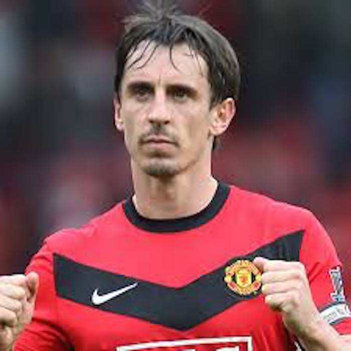El Manchester United contó con un lateral derecho “chaparrón” (para la estatura inglesa promedio) que exclusivamente defendió la casaca de los “Diablos Rojos” al cabo de 19 años. Siempre jugó para los de Old Trafford, de 1992 a 2011. En 593 duelos con el United, Neville marcó en 40 oportunidades.