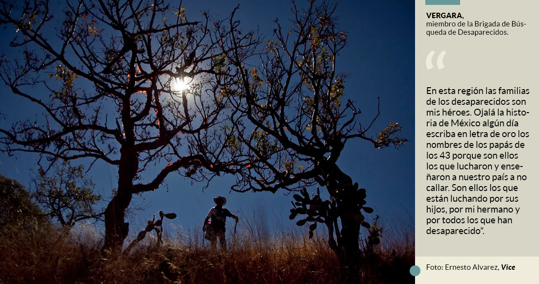 Los normalistas fueron desaparecidos a fines de Setiembre de 2014 y dos meses después, para fines de noviembre, Los Otros Desaparecidos hizo su aparición pública para buscar en los cerros como los padres de los 43. Fue el empujón que mencionó Vergara, del que participó junto a su hermana Mayra.