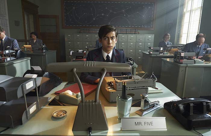 Completa este variopinto grupo Número 5, interpretado por Aidan Gallagher, que tiene la habilidad de viajar en el tiempo y se reencontrará con sus hermanos manteniendo su aspecto adolescente.