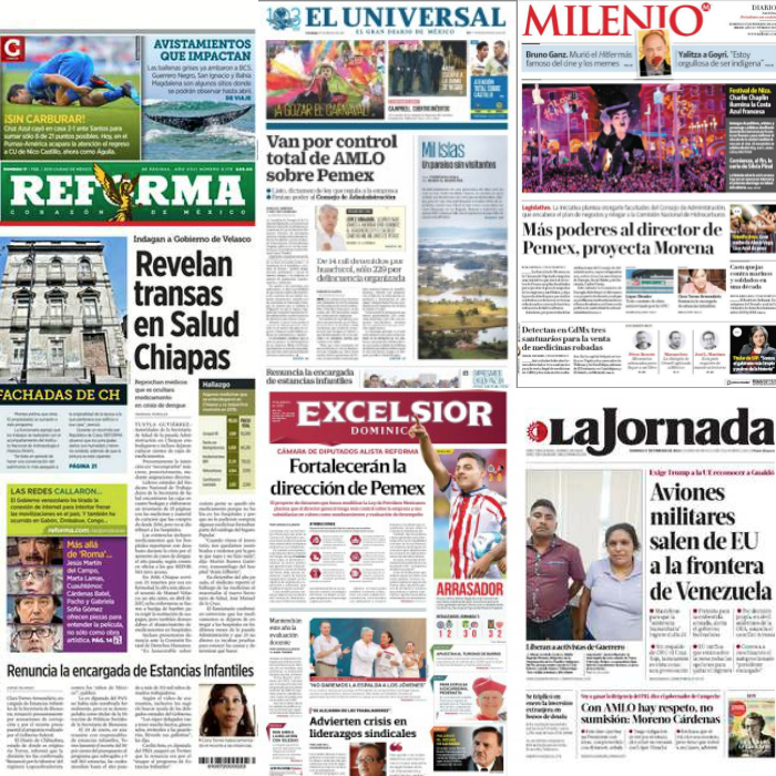 En Milenio: Más poderes al titular de Pemex, proyecta Morena. La iniciativa plantea darle facultades del Consejo de Administración, que encabece el plan de negocios y relegar a la Comisión Nacional de Hidrocarburos.