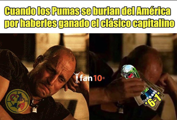 Los Pumas lograron sacudirse la hegemonía "azulcrema" y, una vez que el árbitro finalizó el encuentro, el internet se vio invadido por una oleada de memes relacionados con el triunfo "auriazul".