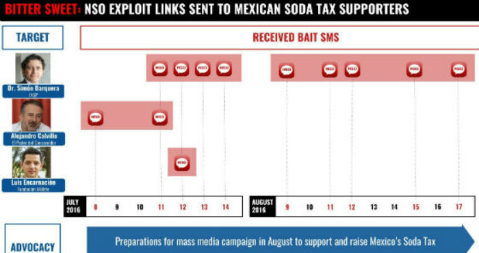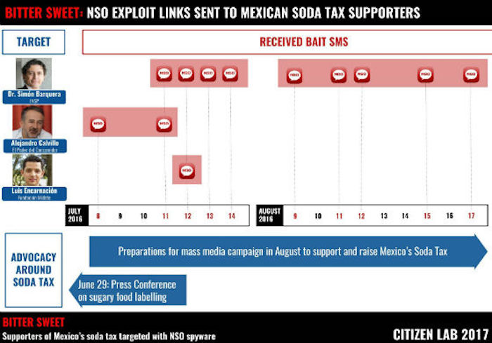En febrero de 2017, Citizen Lab, de la Universidad de Toronto, publicó el reporte técnico Bitter Sweet: Supporters of Mexico´s Soda Tax Targeted with NSO Exploit Links en que se informó que quien esto escribe, director de El Poder del Consumidor, el Dr. Simón Barquera, investigador del Instituto Nacional de Salud Pública y Luis Manuel Encarnación, en ese momento director de la asociación Mídete, habíamos sido espiados con un sistema altamente sofisticado llamado “Pegasus” de la empresa israelí NSO Group.