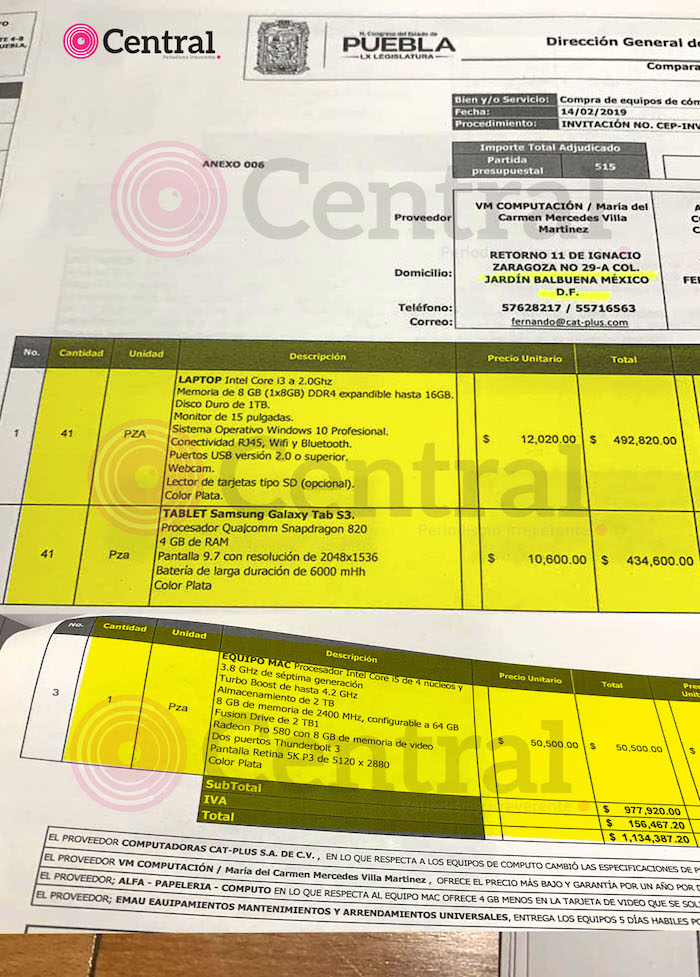Puebla/Ciudad de México, 19 de febrero, (SinEmbargo/Central).- Sin que sea exclusivamente para uso laboral, los 41 diputados del Congreso del estado pretenden destinar más de un millón de pesos para la compra de equipos de cómputo como laptops, tabletas y una Mac.