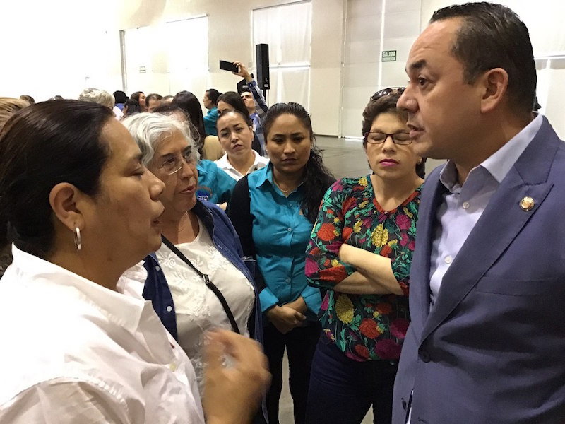 A la convocatoria de diputados del PAN y gobierno del estado, acudieron alrededor de 300 personas; ahí, representantes y trabajadores de las estancias, sostendrían a puerta cerrada una reunión, dijo una funcionaria que evitó el acceso a Zona Franca, y a donde al final dejaron ingresar a los representantes de los medios.