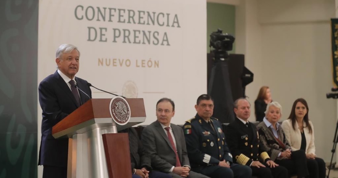 Ciudad de México, 20 de febrero (SinEmbargo).- El Presidente Andrés Manuel López Obrador ofreció su primera conferencia de prensa esta mañana fuera de la Ciudad de México. Encabezó la reunión del Gabinete de Seguridad en Monterrey, Nuevo León, acompañado por el Gobernador de esa entidad, Jaime Rodríguez Calderón. Desde esa ciudad, el mandatario informó que la doctora Nadine Gasman Zylbermann será la directora del Instituto Nacional de las Mujeres (Inmujeres).