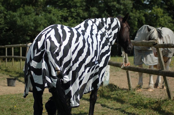 Además, observaron que los insectos se posaban en la cabeza expuesta de los caballos vestidos con abrigo de rayas tan a menudo como lo hacían en los caballos con un color uniforme, sugiriendo así que la prenda sí surtía efecto.