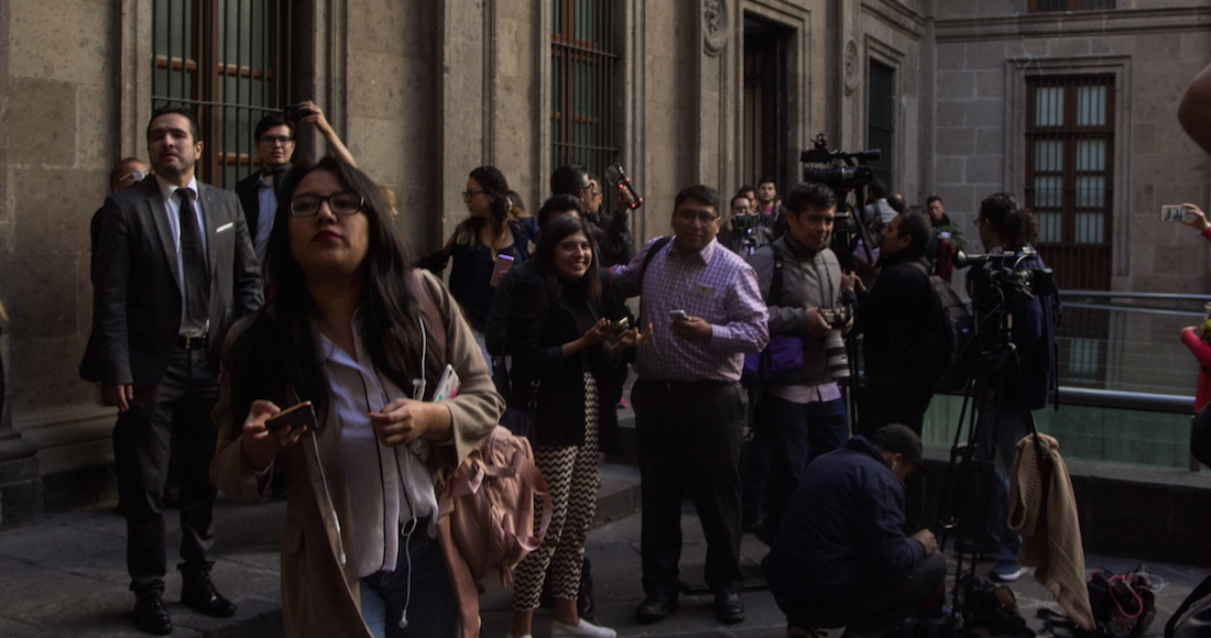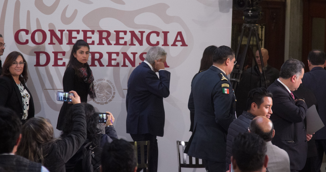 El Mandatario pidió a las y los periodistas que se seguían su conferencia en el Salón Tesorería que salieran con calma del recinto.