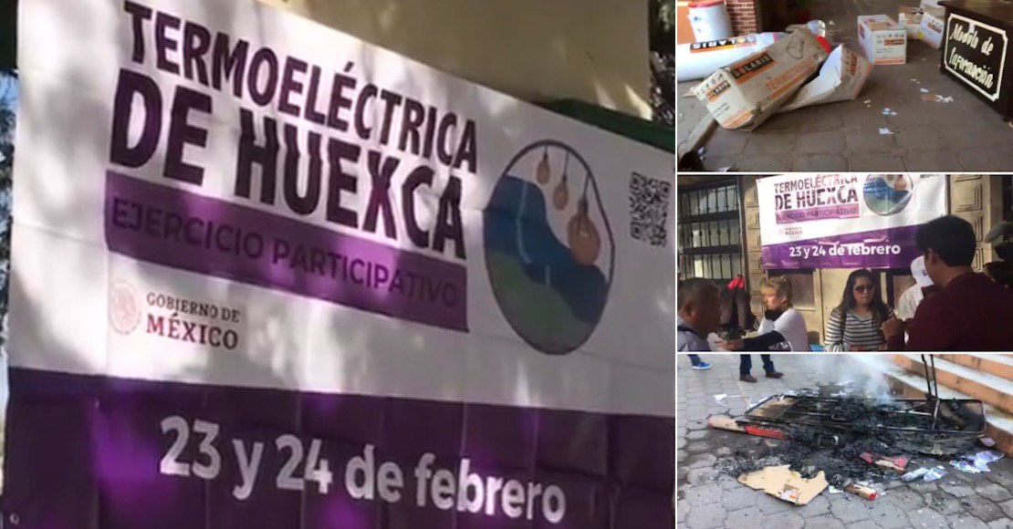 Habitantes del poblado de Amilcingo, del municipio de Yecapixtla, quienes forman parte del Frente de Pueblos en Defensa de la Tierra y el Agua, cumplieron una jornada informativa para intentar detener la obra y como forma de protesta quemaron dos urnas y obligaron a cerrar otras ocho cercanas a la comunidad de Huexca, donde se ubica el proyecto.
