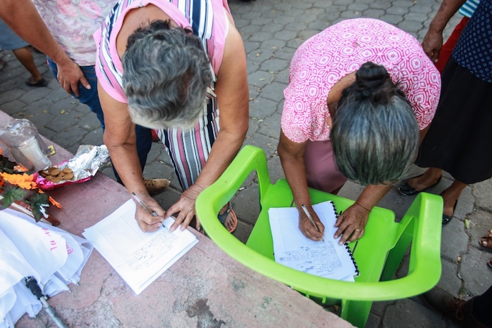 Una, dos, de pronto había pequeñas filas. Vecinas que no habían asistido a la asamblea se acercaban para colocar su nombre.