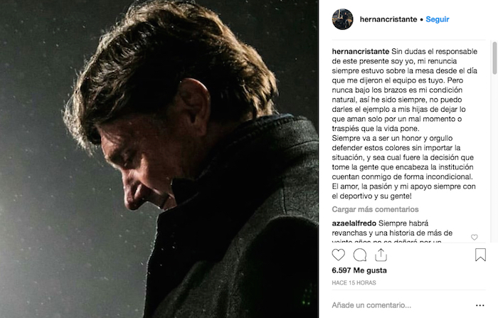 “Por medio de la presente, comunicamos que el Consejo Directivo de esta Institución, ha decidido que Hernán Cristante deje la Dirección Técnica de nuestro equipo”, escribió el club en redes sociales.