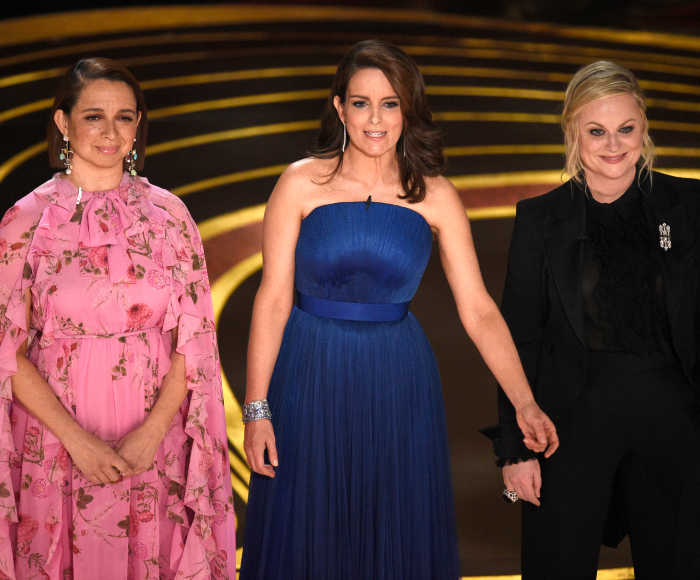 Se hizo sin presentador después de que Kevin Hart renunciara al puesto, aunque el trio de Tina Fey, Amy Poehler y Maya Rudolph presentó lo que fue básicamente un monólogo de apertura.