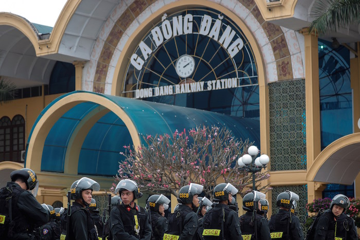 Kim evitó cualquier aparición en público en la capital vietnamita, y únicamente se desplazó a la embajada norcoreana en Hanoi nuevamente escoltado por un pequeño ejército privado, mientras la agenda de su primera visita a Vietnam se mantenía en secreto.