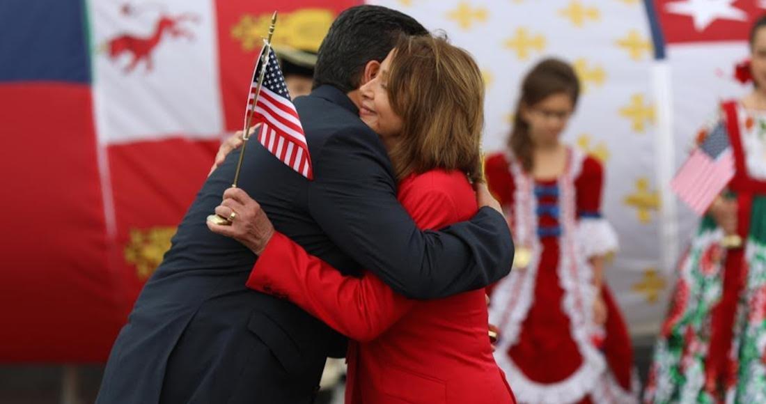 Ciudad de México, 27 de febrero (SinEmbargo).- El Gobernador, Francisco García Cabeza de Vaca y la Presidenta del Congreso de los Estados Unidos, Nancy Pelosi, participaron el sábado en la ceremonia de abrazo a mitad del puente fronterizo en conmemoración al Natalicio de George Washington, una celebración con 122 años de historia.