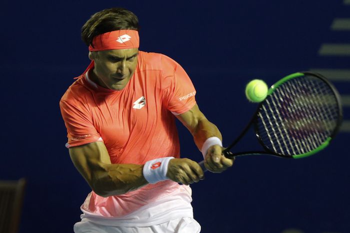 El tenista español David Ferrer devuelve una bola al alemán Alexander Zverev durante el partido de octavos de final del Abierto de tenis de México. Foto: EFE
