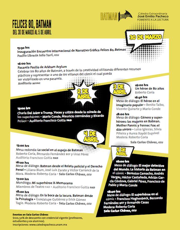 Para poder acudir a alguna de estas actividades y celebrar junto a Batman, deberás inscribirte en la página de la Cátedra Extraordinaria José Emilio Pacheco.