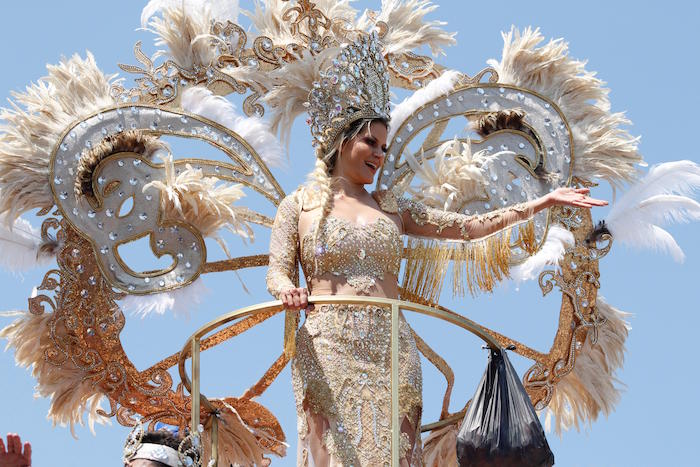 Al frente del desfile está la actual reina del carnaval, Ilse I, montada en una de los 35 carros alegóricos, vehículos decorados con la temática de los 500 años de fundación de la ciudad, y elemento metálicos, luces y brillo.
