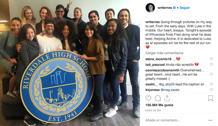 "Viendo fotos de camino al set. De los inicios. Con Luke en el medio. En nuestro corazón, siempre. El episodio de esta noche de #Riverdale muestra a Fred haciendo lo que mejor hace: ayudar a Archie. Está dedicado a Luke, como todos los episodios para el resto de nuestra serie", escribió el showrunner en Instagram.