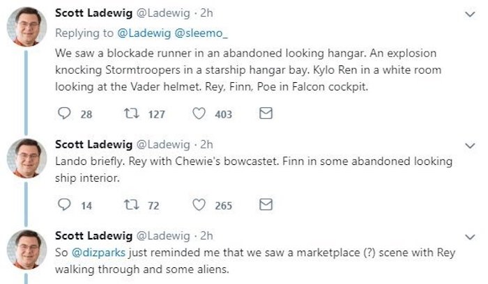 Si bien es cierto que las secuencias descritas no dan muchas pistas del argumento de la película, esto da un poco de esperanza a los fans que esperan ansiosos para ver el primer adelanto de Star Wars 9. Con la filmación ya concluida, la película se encuentra ahora en proceso de postproducción, y se espera que el tráiler sea lanzado durante la Star Wars Celebration de abril.