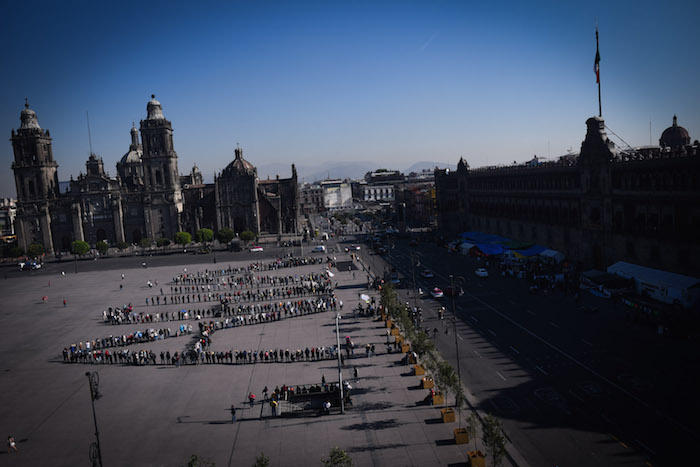 Posteriormente, formaron la palabra “agua” en la plancha del Zócalo capitalino.