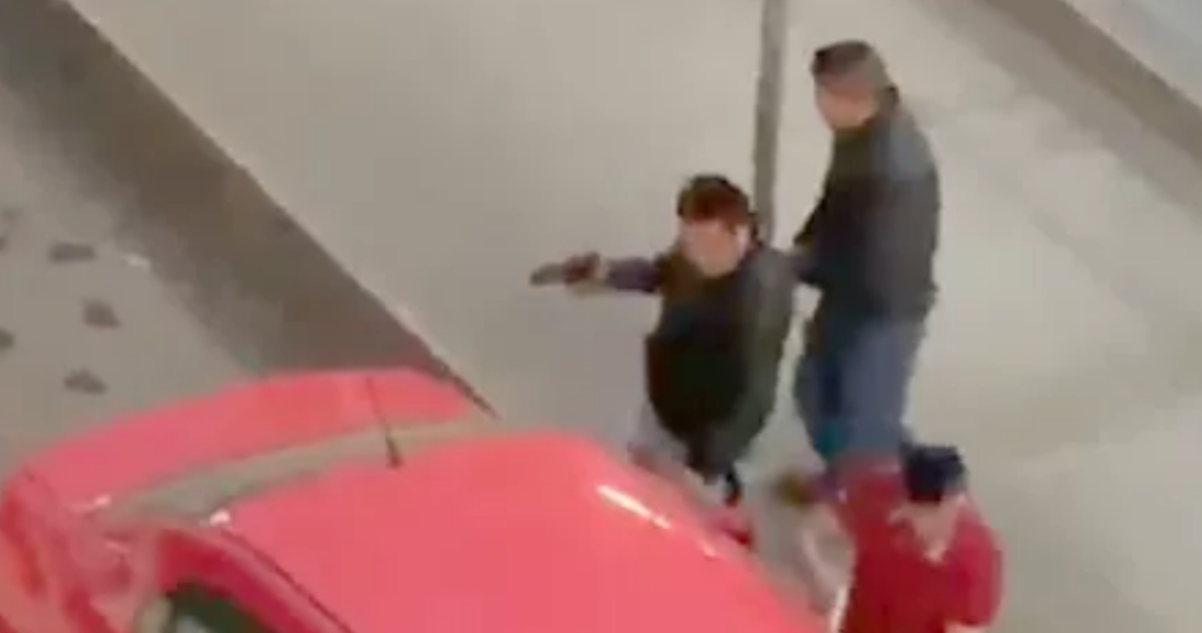 Finalmente, los presuntos delincuentes se alejan del conductor del vehículo blanco y apuntando amedrentando a otros dos sujetos los bajan de su vehículo rojo y escapan.