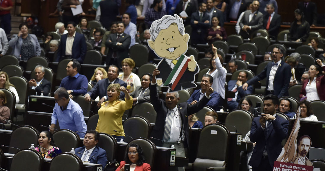 El pasado 14 de marzo, en la Cámara Baja se discutió la revocación de mandato lo que generó que legisladores de la bancada del Partido Acción Nacional (PAN) subieran a la tribuna para mostrar una lona con la leyenda “Sufragio efectivo, no reelección", además carteles con el mensaje “#RevocaciónEsReelección”. Ese mismo día, con 328 votos a favor, 153 en contra y dos abstenciones, el pleno de la Cámara de Diputados aprobó en lo general el dictamen de reforma constitucional en materia de revocación de mandato y consulta popular.