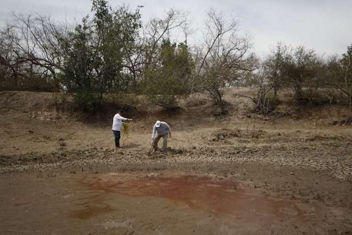 De ahí sacaron con un gancho una bolsa negra con piedras y una camisa de rayas negras, rojas y blancas teñidas con sangre. Volvieron a echar el gancho, pero no sacaron nada, solo maleza y lodo. Una vez más, pero pasó lo mismo.