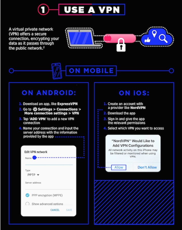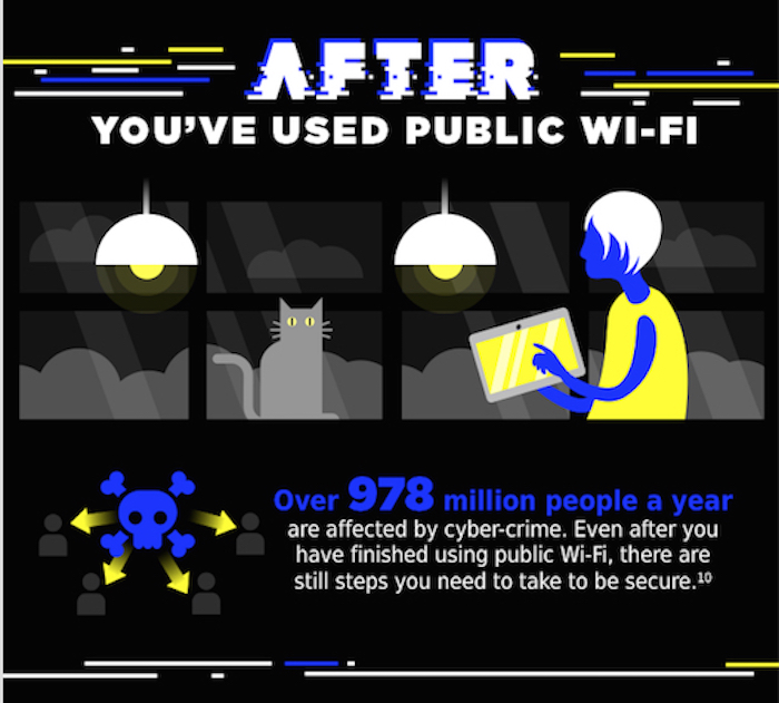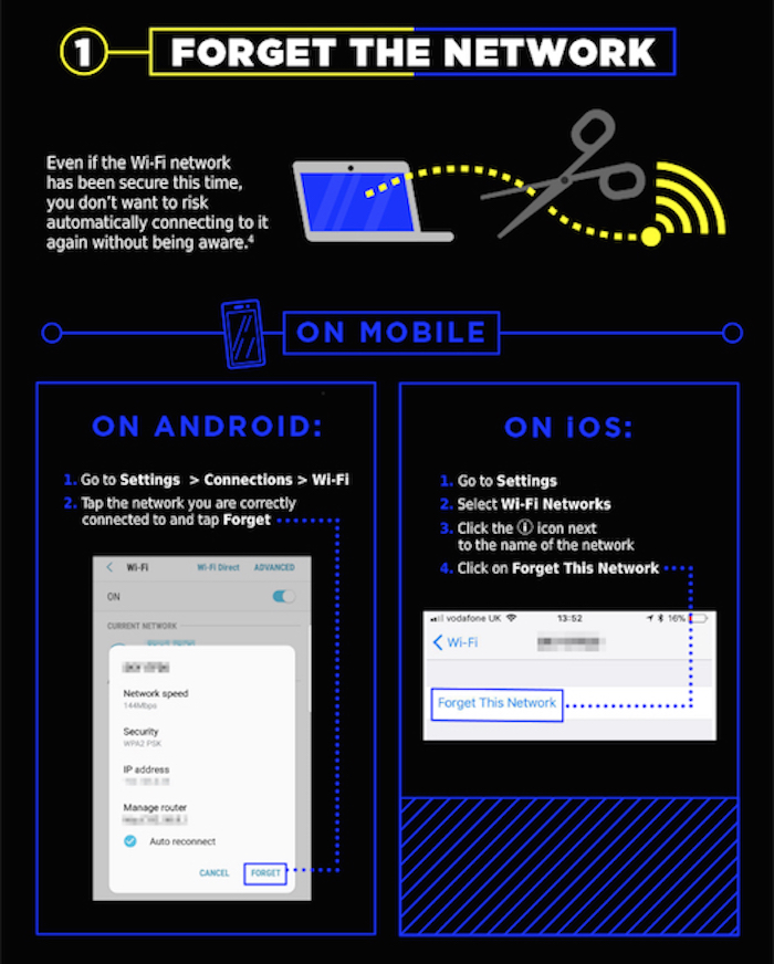 Teniendo en cuenta que una cuarta parte de todos los puntos de acceso Wi-Fi no utilizan ningún tipo de cifrado y que los ciberdelincuentes emplean esta brecha para el robo de datos empleando engaños como la estafa de los gemelos malvados, debes responsabilizarte y tomar las riendas de la protección de tu dispositivo.
