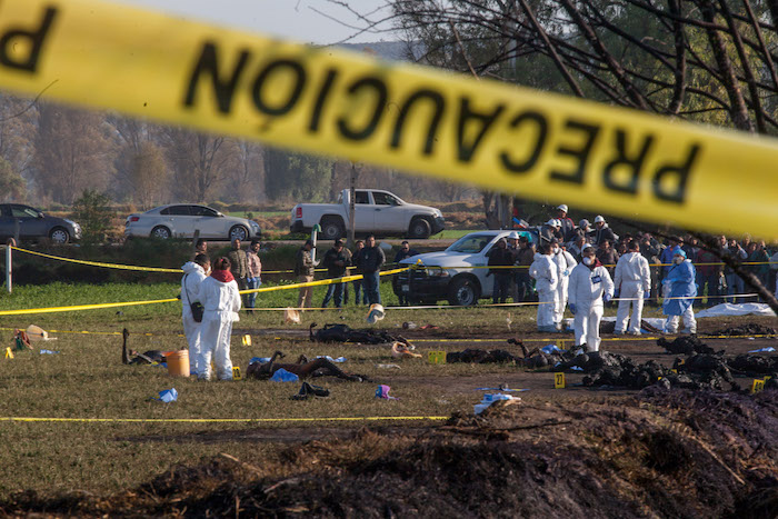 Peritos y militares trabajan en la zona de la comunidad de San Primitivo, donde el día viernes se reportó una explosión en una toma clandestina de combustible. Foto: Juan Pablo Zamora, Cuartoscuro