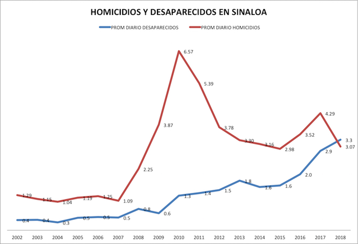 Es decir, que no podemos seguir diagnosticando al crimen organizado sinaloense con las mismas premisas de hace treinta años. El problema que ahora enfrentamos es diferente y sus dinámicas de violencia también. El homicidio es la más poderosa de esas dinámicas, y si bien hay que reconocer su disminución (-28%, 2018), hay que atender otros delitos de igual o mayor impacto en el tejido social como la desaparición de personas (+13.9%, 2018). Un delito silencioso que impacta menos en la percepción de violencia de una región pero que genera un profundo daño social.