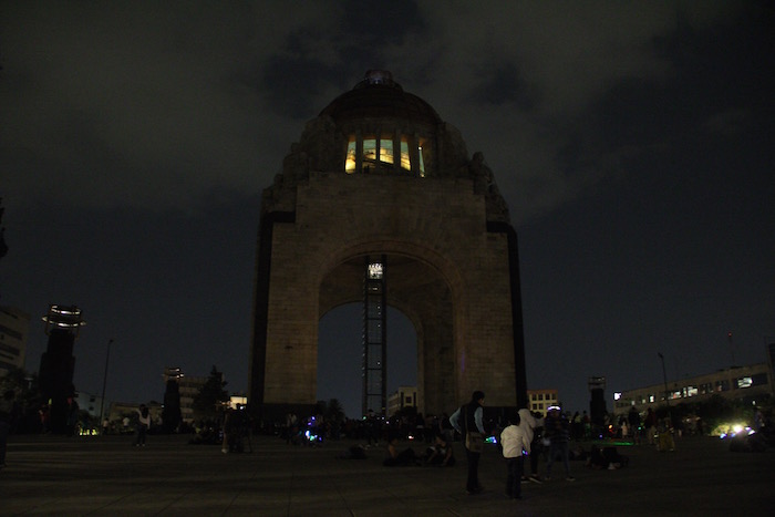 Un mapa de luces de México y Norteamérica se destacaba en el suelo de la explanada del Monumento a la Revolución, situado en la zona centro de la Ciudad de México