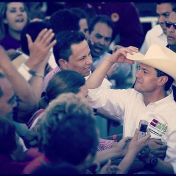 Celaya Valenzuela tiene dos fotografías en las que está acompañando al entonces candidato priista a la Presidencia, Enrique Peña Nieto: una en un acto proselitista y otra donde aparecen los dos, sonrientes.